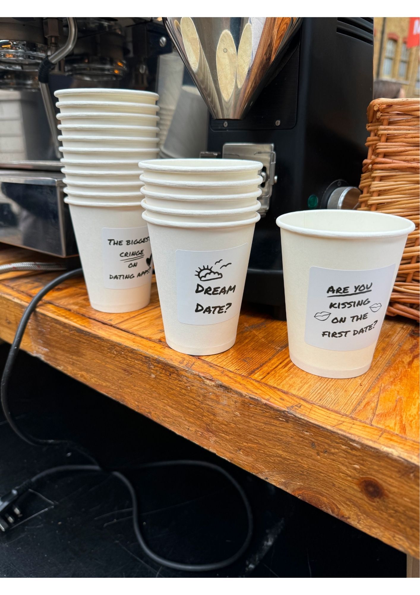 - Takeaway coffee cups, lids & bespoke "question" stickers